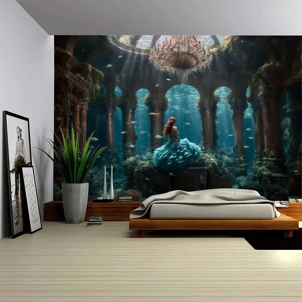 Ocean Wave Tapestry Sea Mermaid Wall Hanging Coastal Decor Beach Theme Boho Tapestry Aesthetic Room Decor Home Textile Gift for