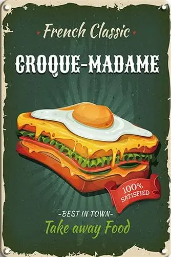CN-Tin Sign Food French Classic Croque-Madame Take Away Food, Metal Wall Signs Tin Plaques Or Bar Kitchen Home Man Cave Bed