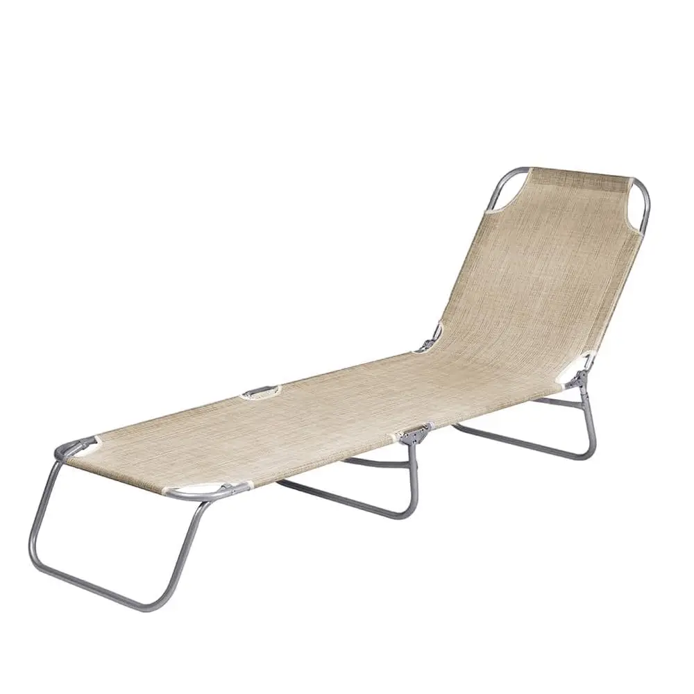 Beige folding sundress bed-Measuring 180x55x62 cm and maximum capacity 120 kg-garden deckchair with textilene fabric and metal frame