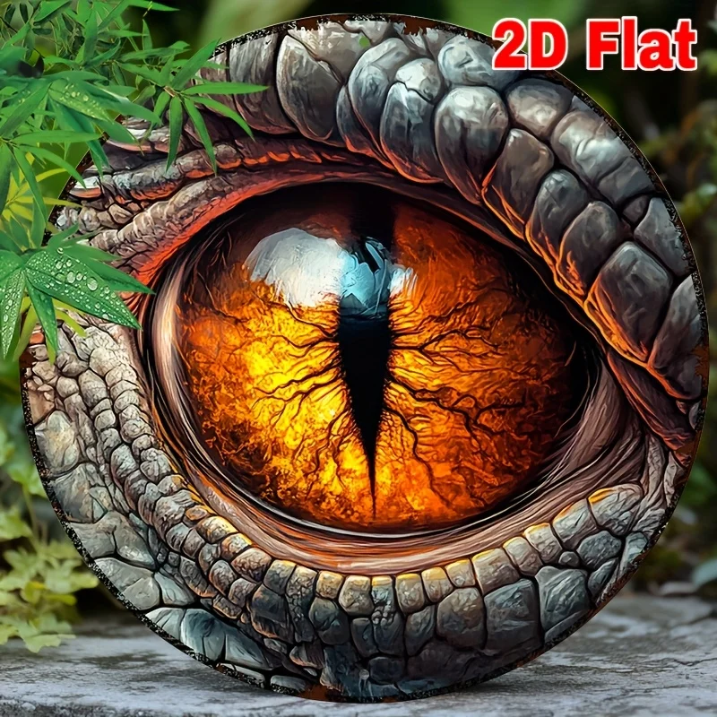[2D Flat] 1pc Dragon'S Eye 2D Flat Metal Sign - Round Aluminum Wall Art with Intricate Scales & Mystical Design, Perfect for Bed