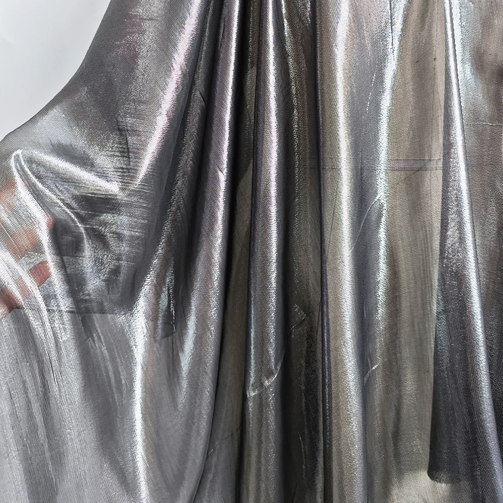 Soft Solid Silk Metallic Georgette Crepe Shimmer Jacquard Shiny Silk Fabric For Dress Scarf