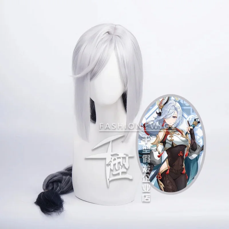 N72 Game Genshin Impact Shenhe Cosplay Wig Blue White Color Long Braids Headwear Heat Resistant Synthetic Hair 100cm EJ