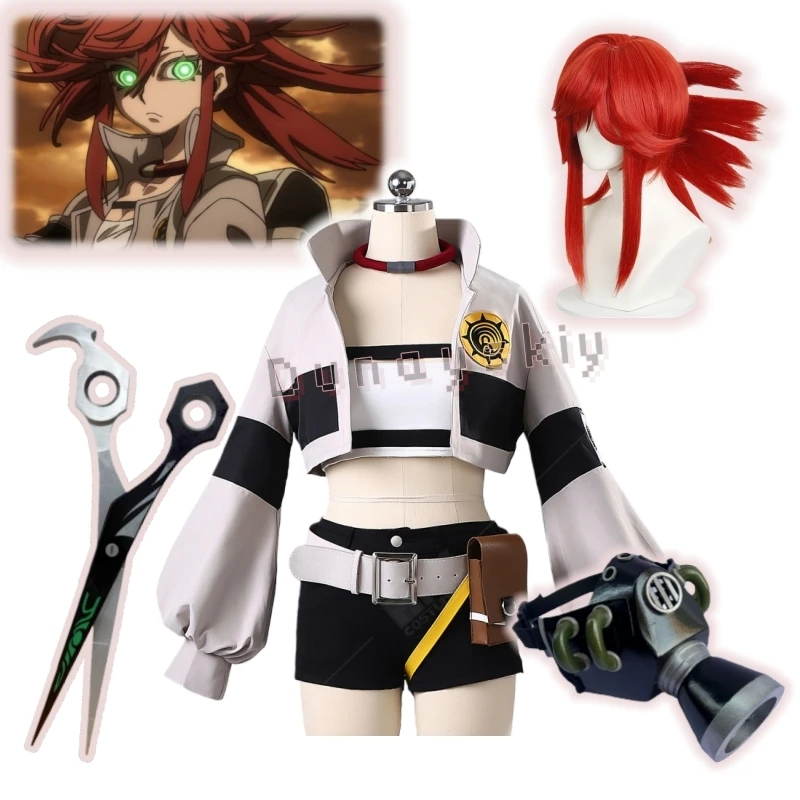 Anime GACHIAKUTA Riyo Cosplay Costume Braided Hair Wig Mask Scissors Top Vest Short Uniform Halloween Carnival Party For Women