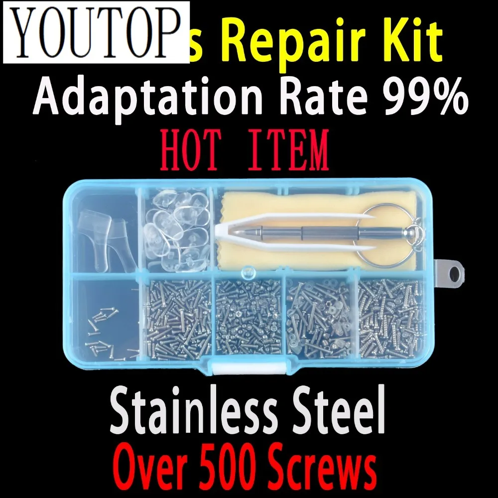 500 Eyeglasses Repair Kit Tool Set sunglasses screws Micro Nose Pads Screwdriver Ear Grips for Sunglasses repair tool Watch