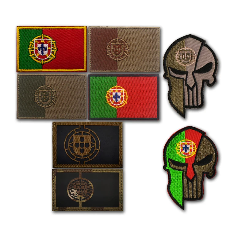 Portugal Flag Embroidery and IR Reflective Armband Tactical Morale Badge Military Clothing Backpack Accessories Hook&Loop Patch