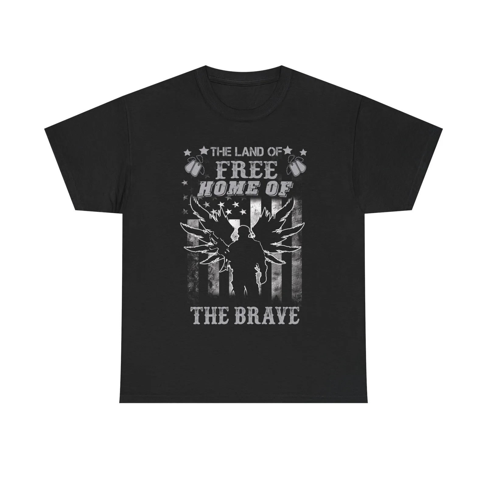 Land of Free Home of Brave T-Shirt Military Veteran Soldier Angel Wings Flag
