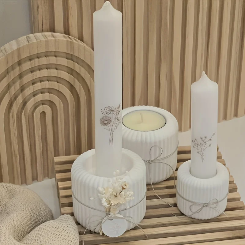 2pcs Silicone Molds, Cylindrical Candle Holder Mold Striped Style, Available in 2 Sizes Large And Small, Resin Decal Candle Box