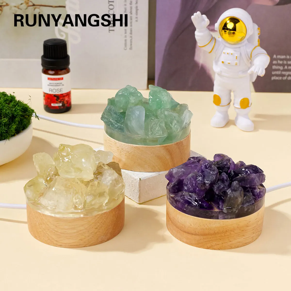 LED Rechargeable Bedside Lamp Natural Quartz Raw Crystal Aromatherapy Nightlight Bedroom Decorative Halloween Christmas Gift