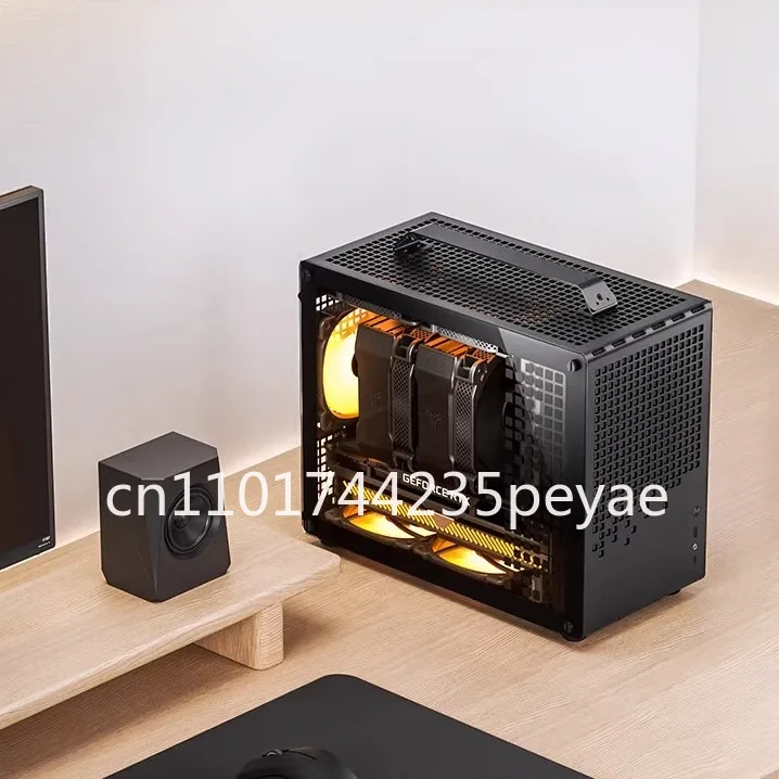 All Aluminum ITX Chassis with Transparent Side Panel, Portable Mini Desktop PC Case for Graphics Card