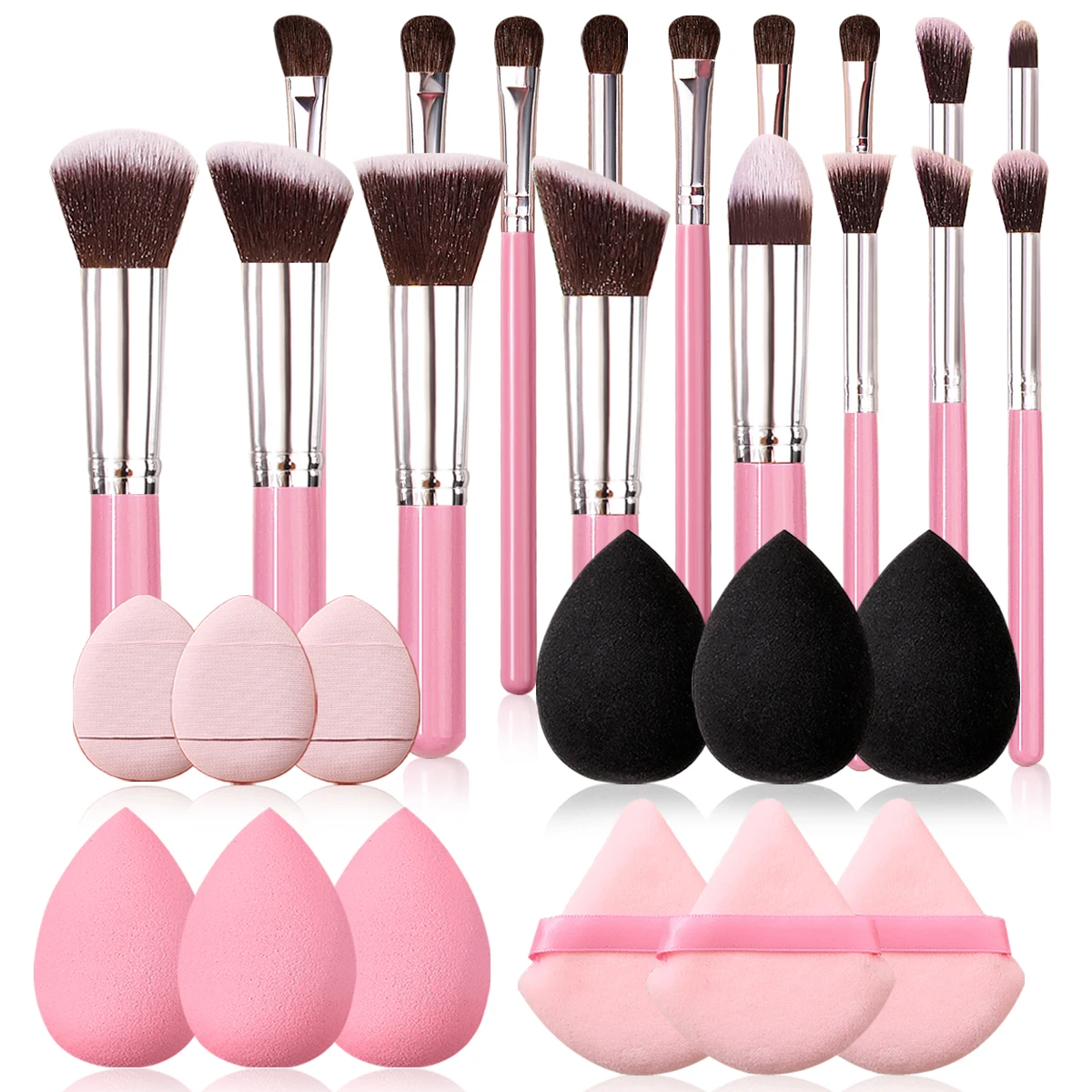 29PCS makeup tool set includes a 17PCS makeup brush set, a 6PCS beauty egg, a 3PCS powder puff,and a 3PCS mini thumb powder puff