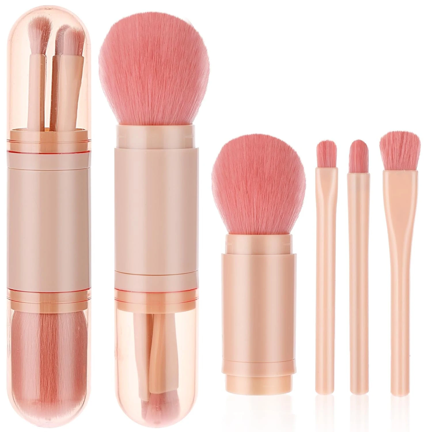 4-in-1 Multi-functional Retractable Convenience Blush Eyeshadow Brush Beginner Makeup Brush Set Mini Travel Makeup Brushes