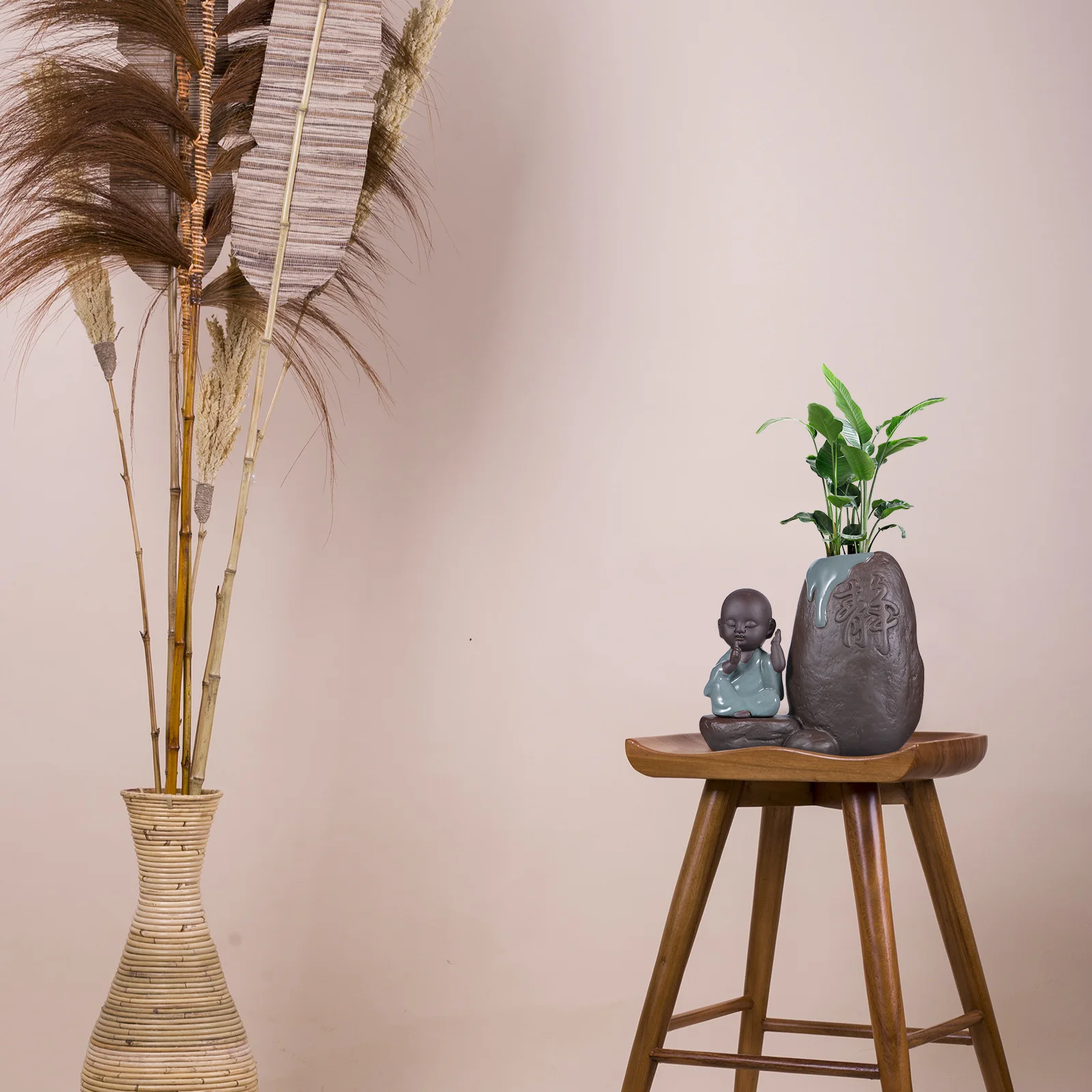 Outdoor Cement Buddha Statue Small Faux Plant Decor for Garden Desk Decorative Garden Sculpture Zen Style Ornament