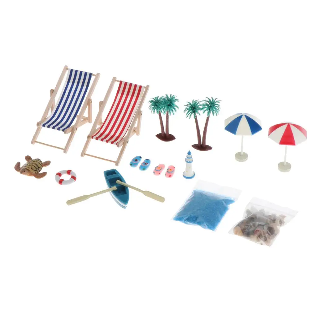 1/12 Dollhouse Miniature Beach Furniture Set Multicolor Artist Offering for Dollhouse Scenes and Gifts