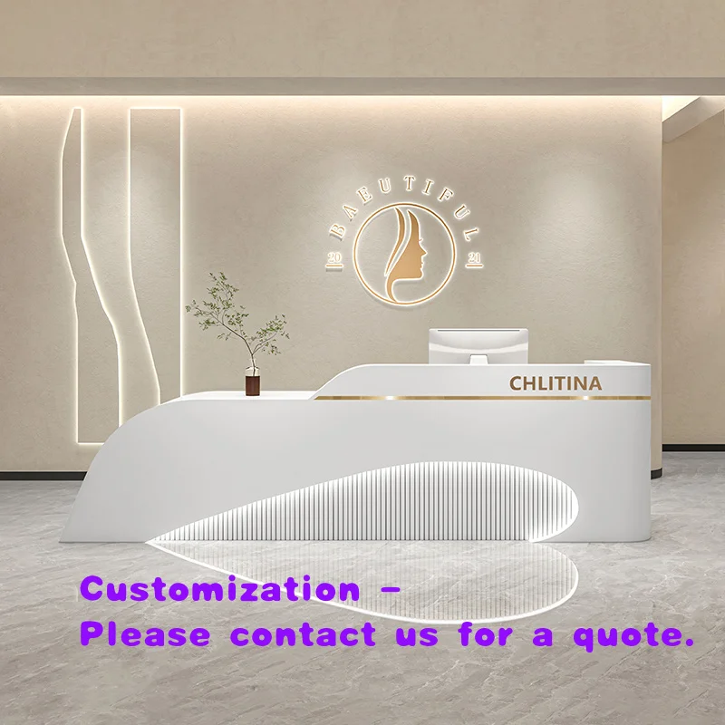 custom.Modern Minimalist MDF Curved Reception Desk LED Light Hotel Clothing Store Beauty Salon Nail Salon Bar Shop Cas