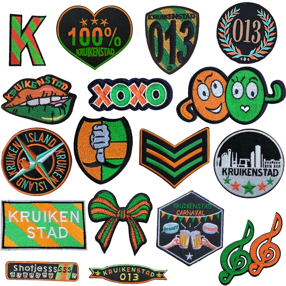 Carnival Kruikenstad Embleem green and orange Patches for Clothing Iron on Embroidered Sew Applique Patch 013 Badge