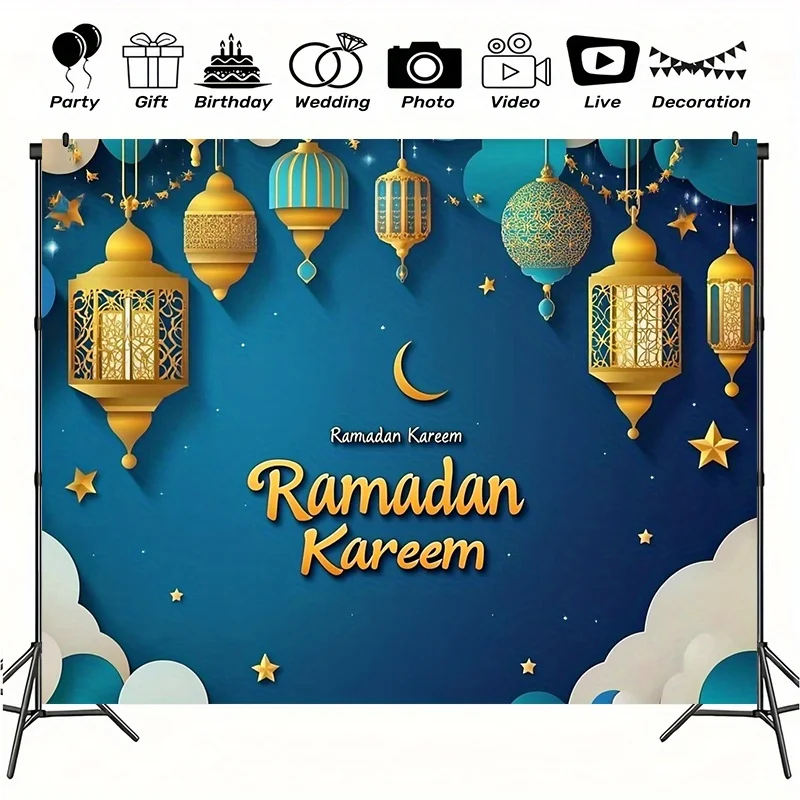 1pc Moroccan Moon Ramadan Kareem Banner - Large Durable Polyester Backdrop for Eid Celebrations, Indoor/Outdoor Party Decor