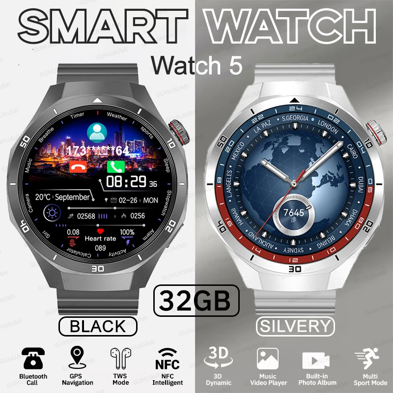 GT5 Pro GPS Smartwatch Amoled Screen 32GB MP3 MP4 Player Bluetooth Network Sharing APP Store ChatGPT Smart Watch Man Sport watch