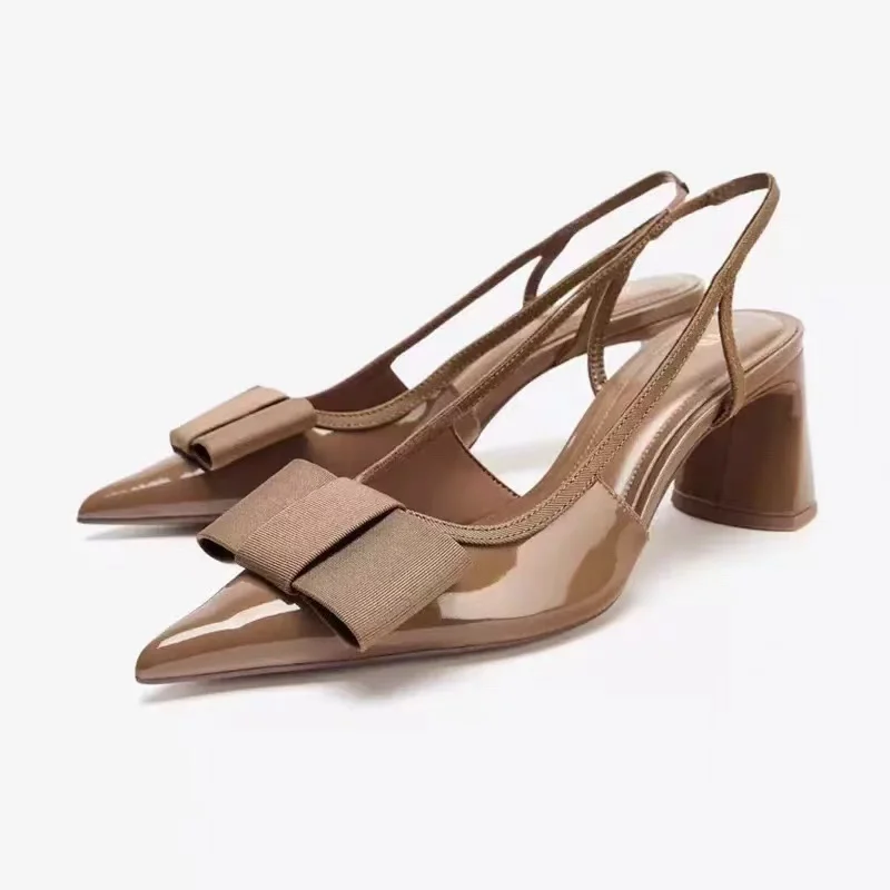 Women's Elegant Pointed Toe Shallow Mouth High Heels Sandals Bow Decoration Open High Thick Heel Mules Party Dress Shoes