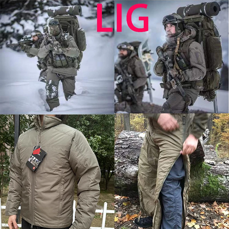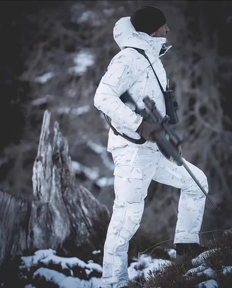 Outdoor tactical stand up collar cotton jacket LIG winter ski suit pants for men, thick, fully zippered, water-resistant