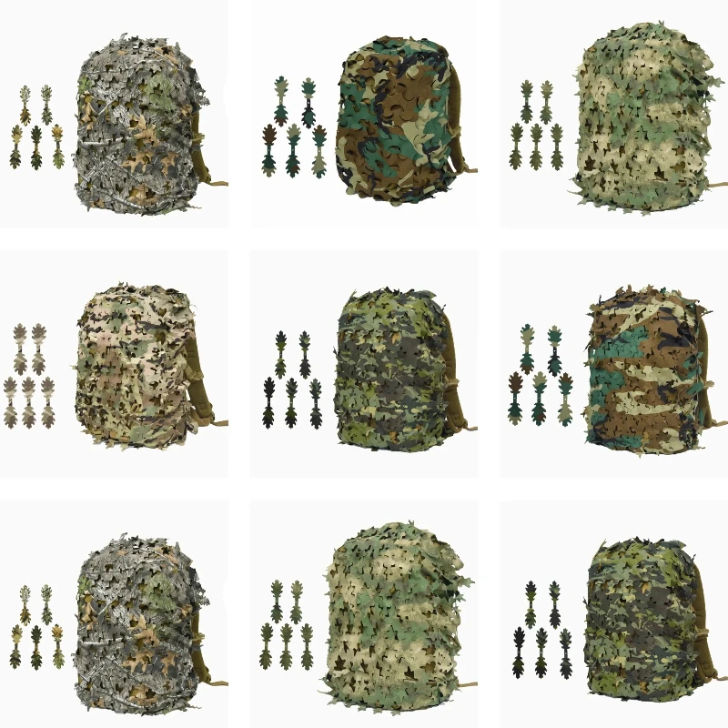 3D Bionic Leaf Shape Disguised Net Backpack Cover Tactical Backpack Camouflage Cover 60L/80L Lightweight Camouflage Design
