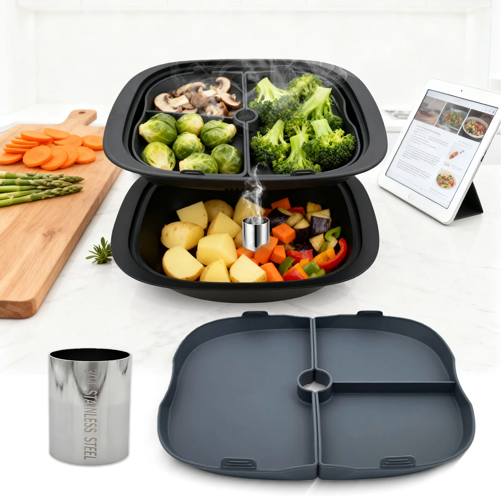 Food Grade Silicone Steamer Easy To Clean Steamed Fish Bowl Microwaveable Environmentally Friendly Steamer Kitchen Cooking Tools