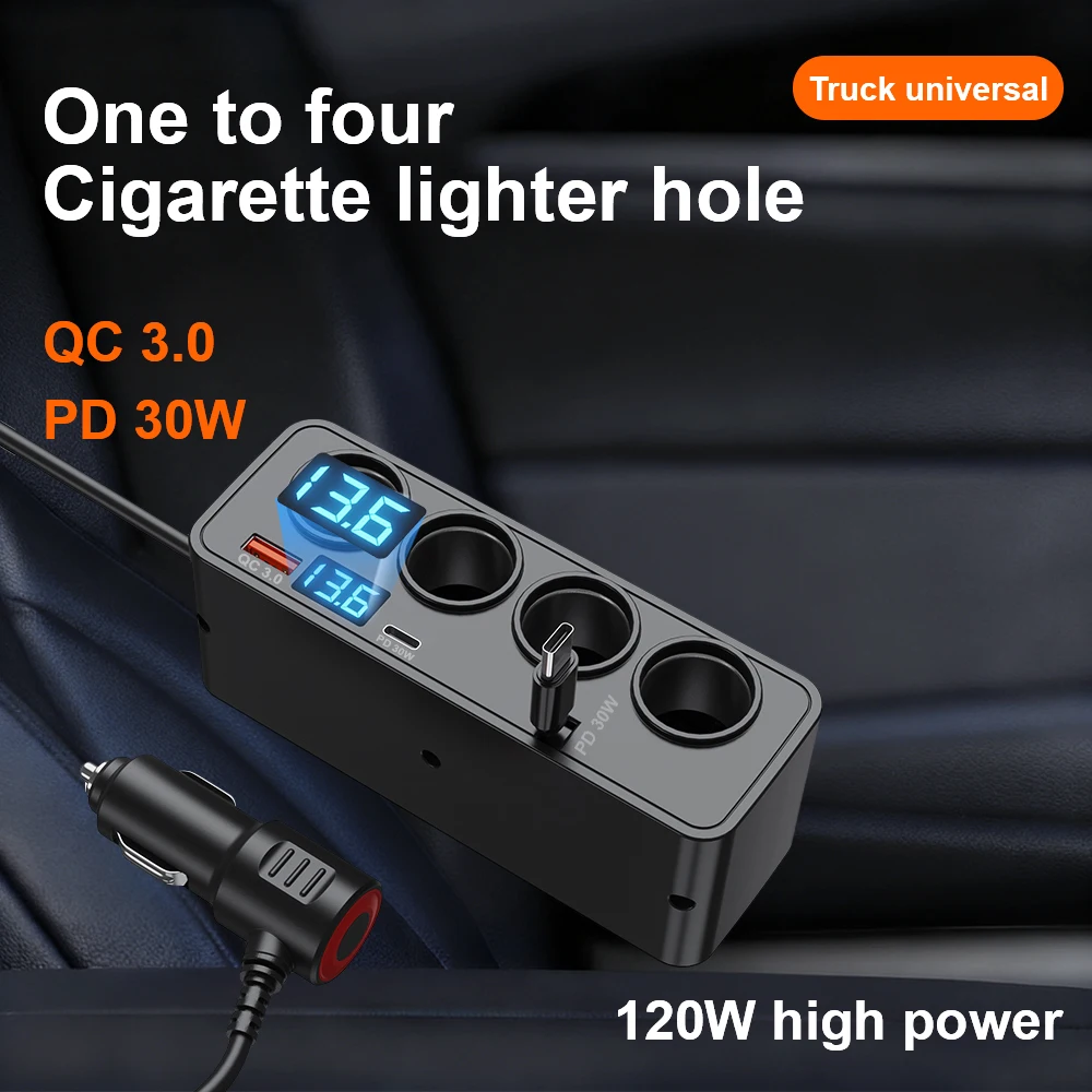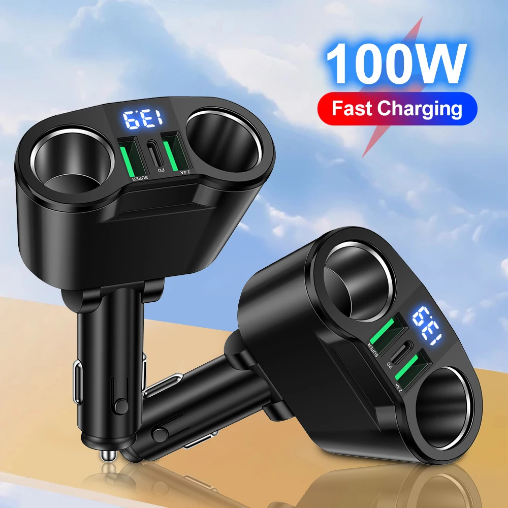 USB Car Charger Adapter Type C Multiple Devices Charged at the Same Time with Digital Display Dual-port USB Car Charger Adapter