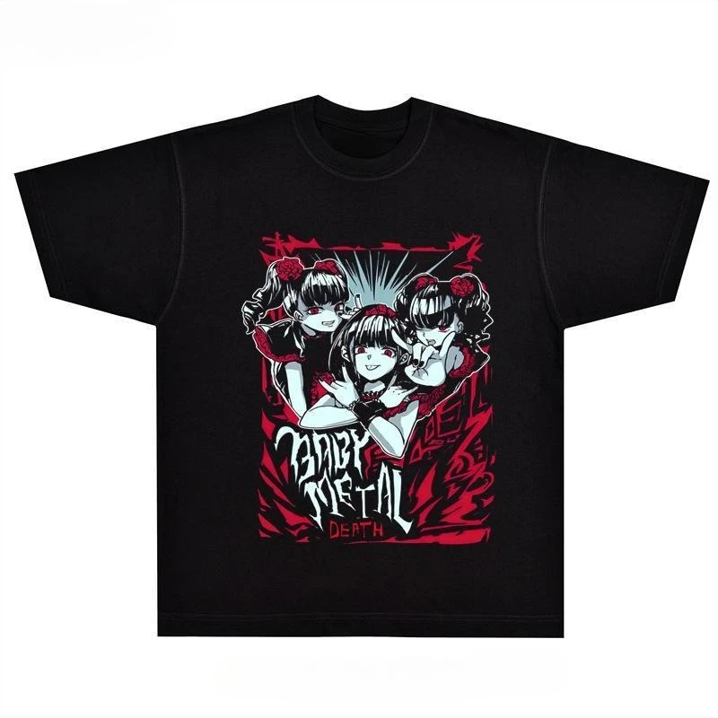 2025 Band Rock Metal American Vintage Cartoon Music Festival Loose Cotton Print Vintage Short Sleeves