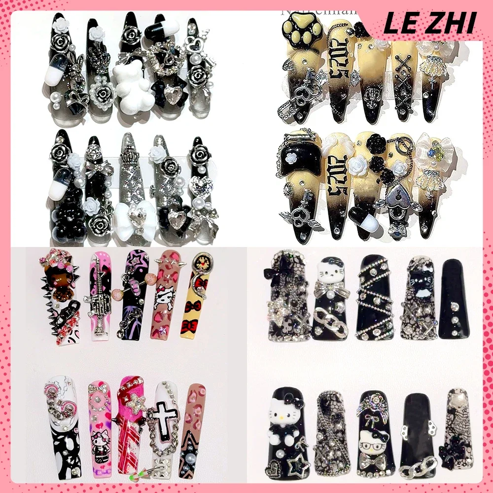 Get Glamorous with, 24Pcs 3D alloy butterfly Square White French Acrylic Press on Nails tips 3D Flower with rhinestone pearls de