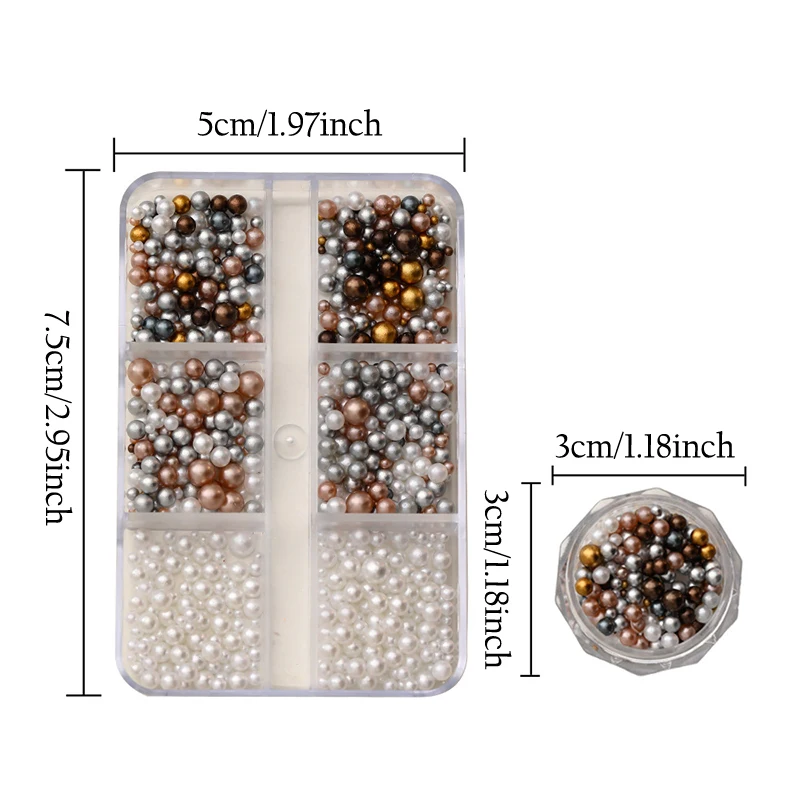 Nail Charms Pearl Decorations Mixed Sizes Colorful Bag DIY Wearable Nails Round Pearls Nail Gems Crafting