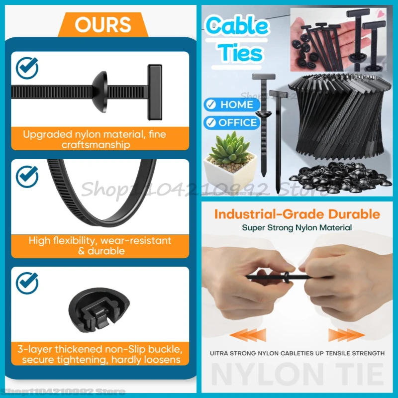Self-Locking Cable Ties, Nylon Wire Management Clamps with Nails for Automotive Repair, Home DIY Tools