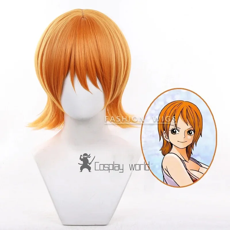 Nami Wig Women Anime Nami Cosplay Costume Simulated Scalp 40cm Short Synthetic Hair Nami Halloween Party Wig+Wig Cap