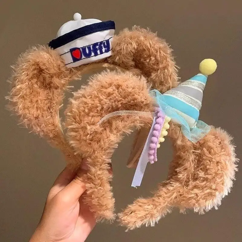 Disney Bear Duffy Cute Cartoon Plush Birthday Hat Headband Navy Hat Hair Clip Girl Photo Accessories Christmas Halloween Gift