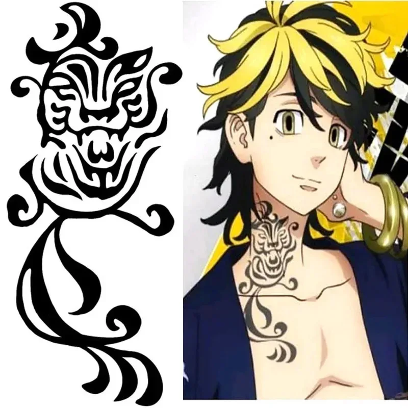 Tokyo Revengers Kazutora Hanemiya Fake Tatoo Tiger Dragon erproof Temporary Tattoo Sticker Hand Body Art Tatouage Sticker Cosshe