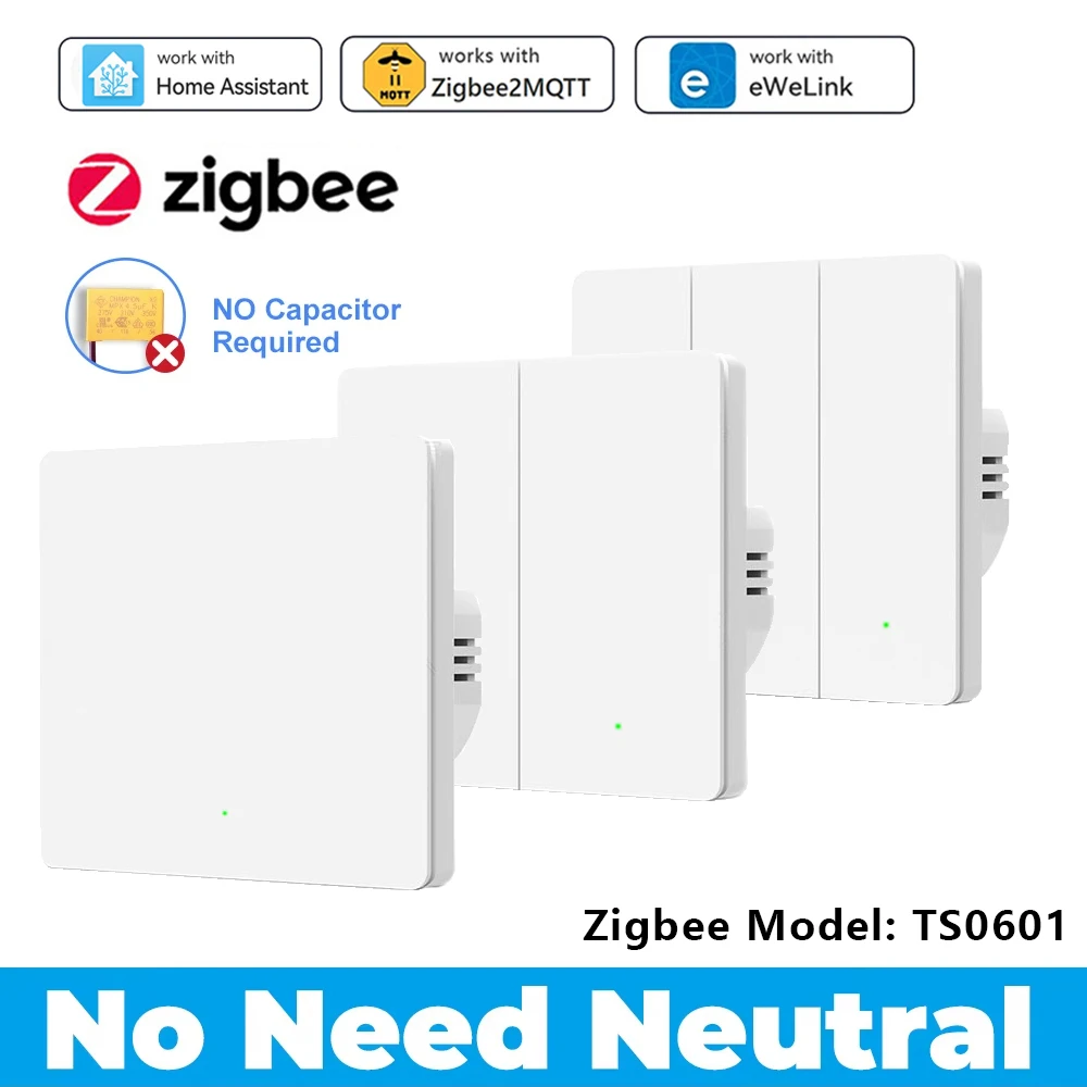 ZigBee Wall Switch No Neutral Wire No Capacitor Needed Smart Light Switch Works With Home Assistant Zigbee2mqtt ZHA Ewelink APP