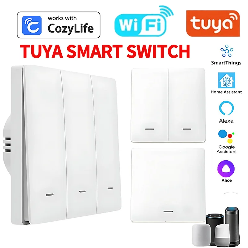 STLF 1234 Gang Zigbee Wifi Smart Light Switch With Neutral Required Smart Home Wall Switch Crystal Glass Panel Pc Frame Us