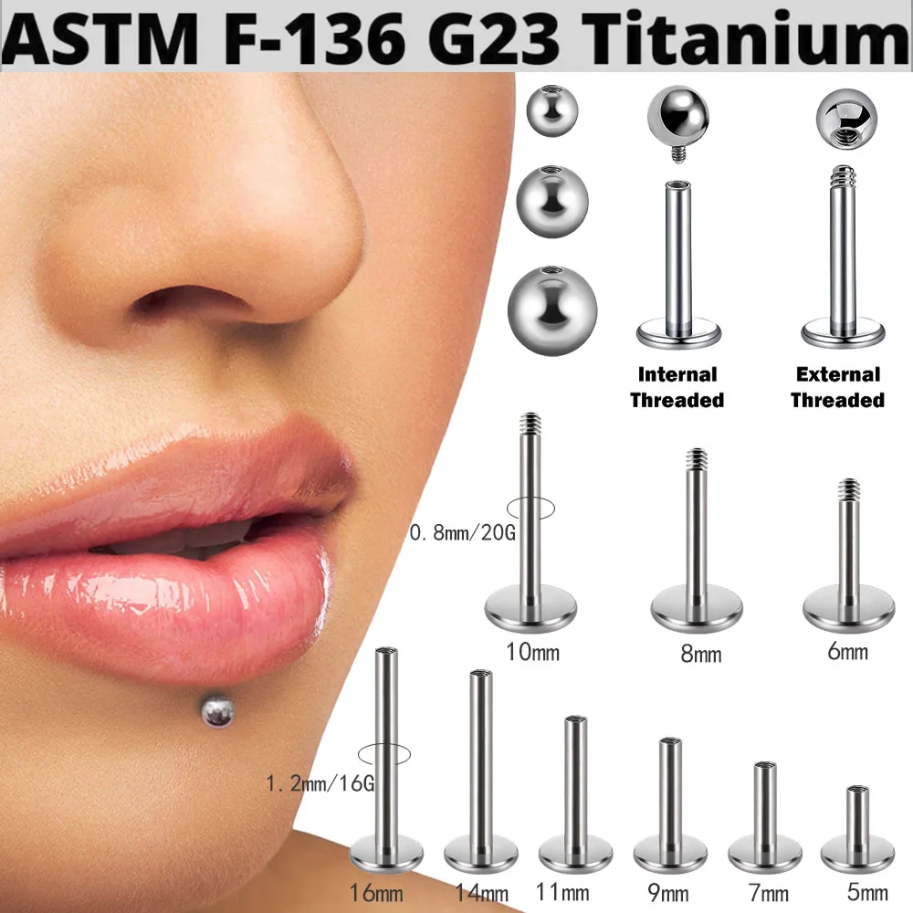 1PC ASTM F136 Titanium Labret Piercing Nose Stud Ball Ear Jewelry Helix Tragus Nostril Piercing Cartilage Earrings