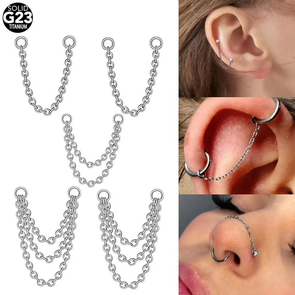 1/5PCS Titanium Double Chain for Nose Labret Jewelry 25-50mm Industrial Helix Piercing Ear Studs Nostril Chain Women DIY Jewelry