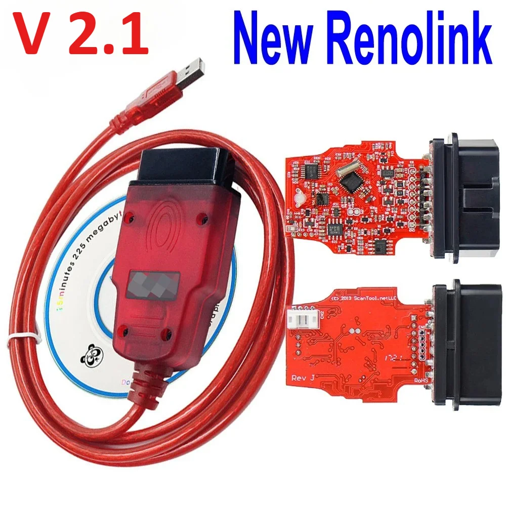 NEWBest V2.11 For Renolink OBD2 Car Diagnostic Cabl ECU Programmer multilingual Air-bag Reset ECM UCH Key Coding Auto Tools
