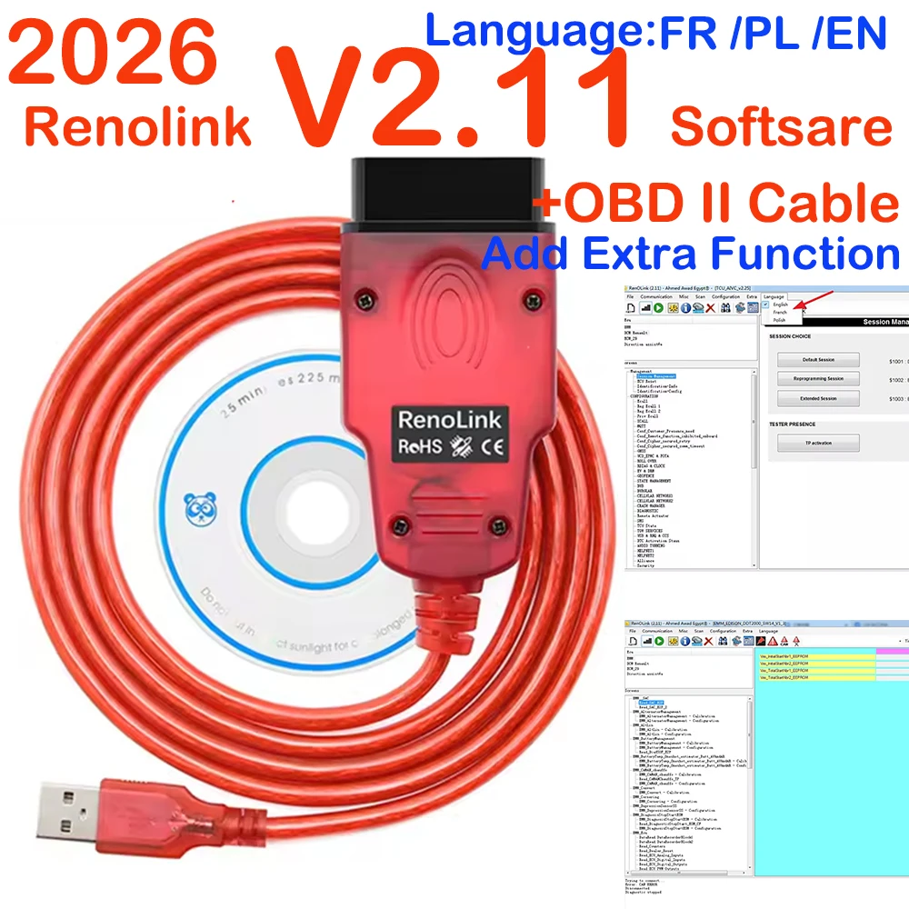 2026 Renolink V2.11 V2.10 V1.99 For Renault Car OBD2 Car Diagnostic Auto Tool ECM UCH Key ECU Programmer Tool