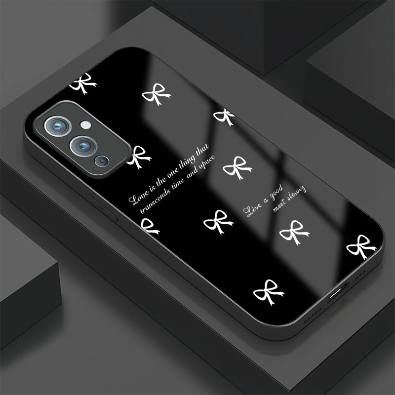 Phone Case For Oneplus 12 12R Luxury Glass Shockproof Cover For One Plus 11 11R 10T 10R 10 9 8 Pro 8T Bow Knots Print Fundas