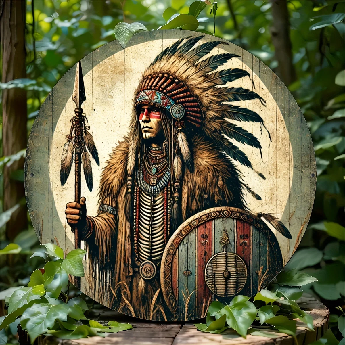 One Piece Native American Man 20.32X20.32 cm Type Round Metal Sign Suitable for Room Decoration, Wall Decoration, Restaurant Dec