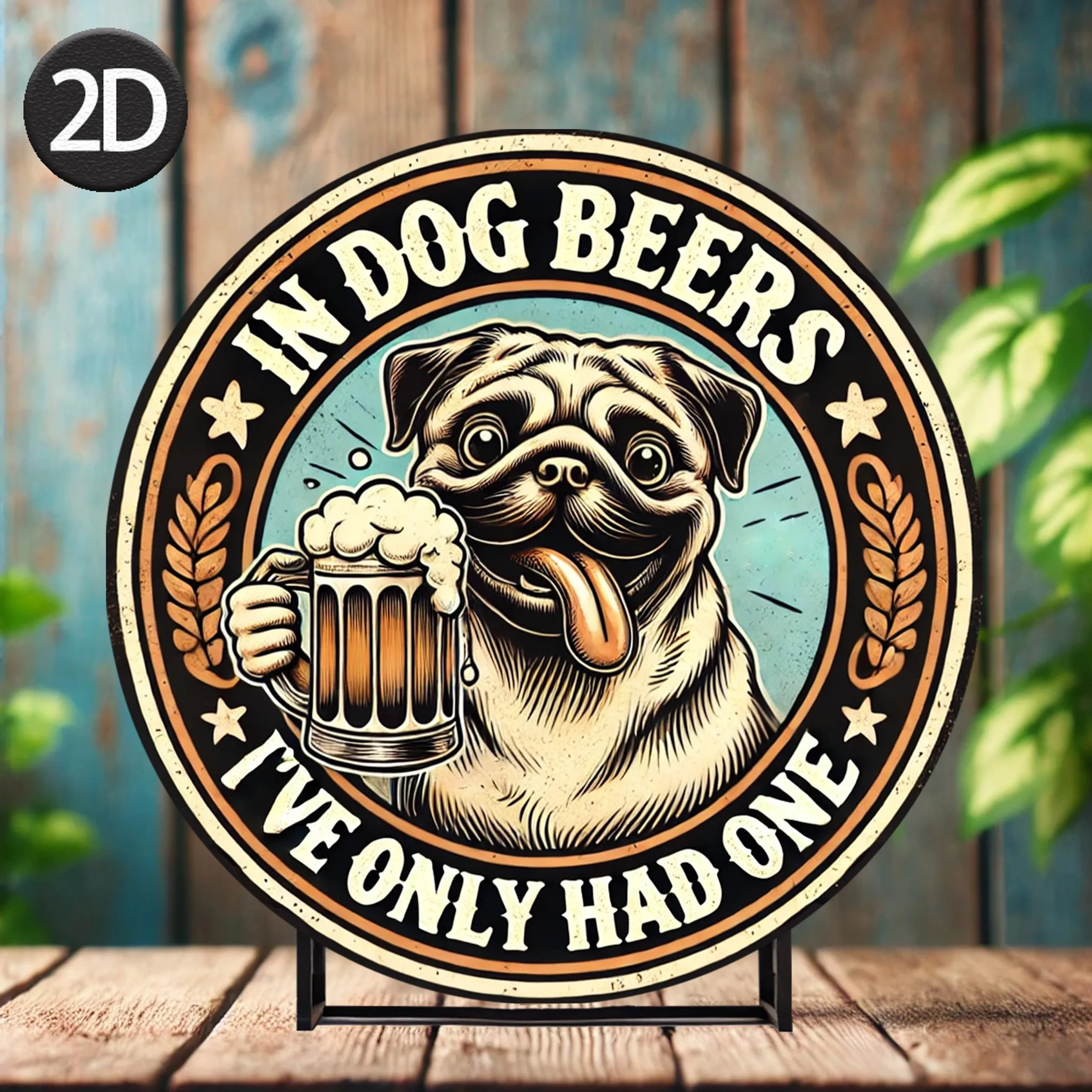 2D Flat, 1pc Vintage Round Aluminum Sign "In Dog Beers I've Only Had One" with Pug & Beer Mug Design - Perfect for Room Decor