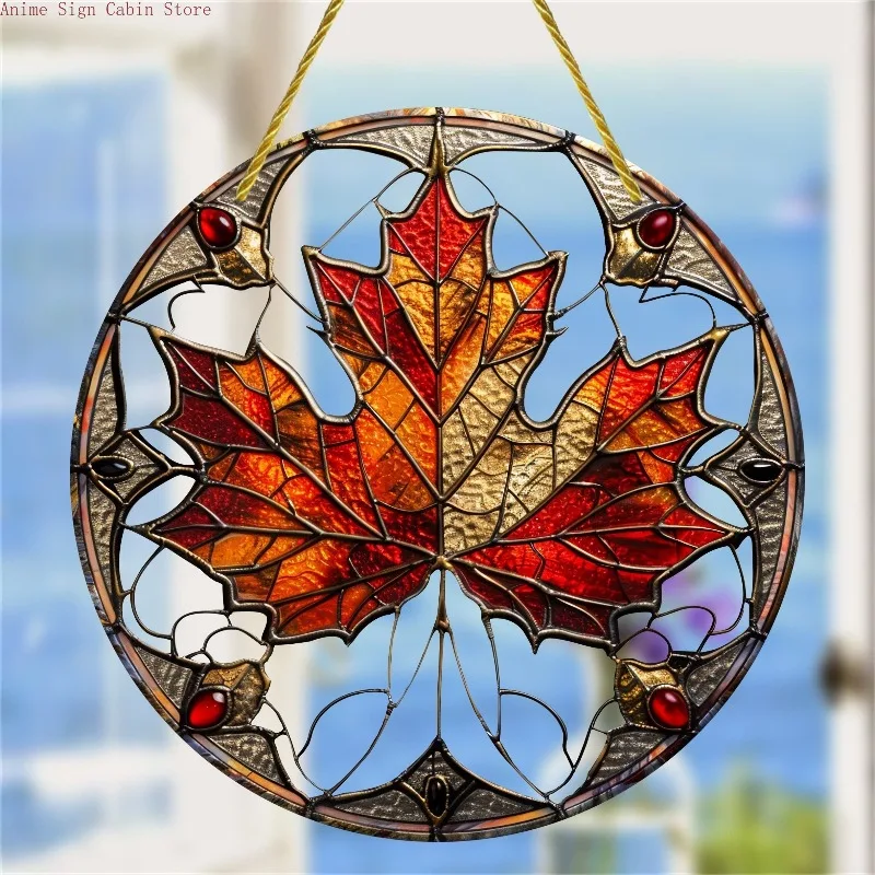 [2D Flat] One Item, Stylish Maple Leaf Glasses,Acrylic Sign,Round Decoration,Elegant Window,Porch,Wall Art for Home Room Decor