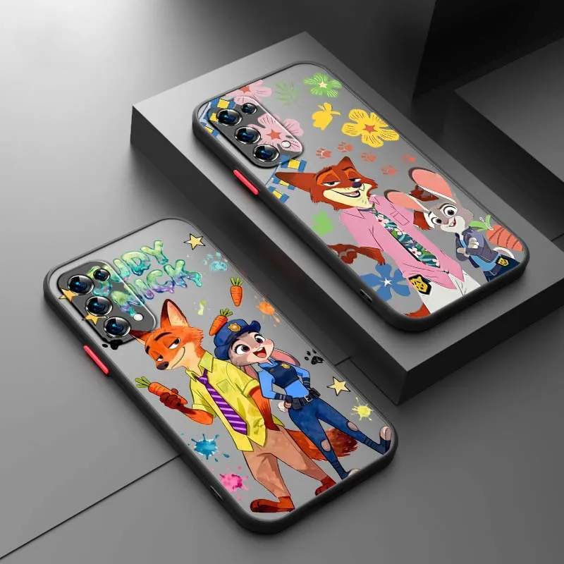 Disney Zootopia Anime For OPPO Find X3 X5 Lite Pro A98 A94 A93 A78 A79 A76 A58 A57 5G Frosted Translucent Phone Case
