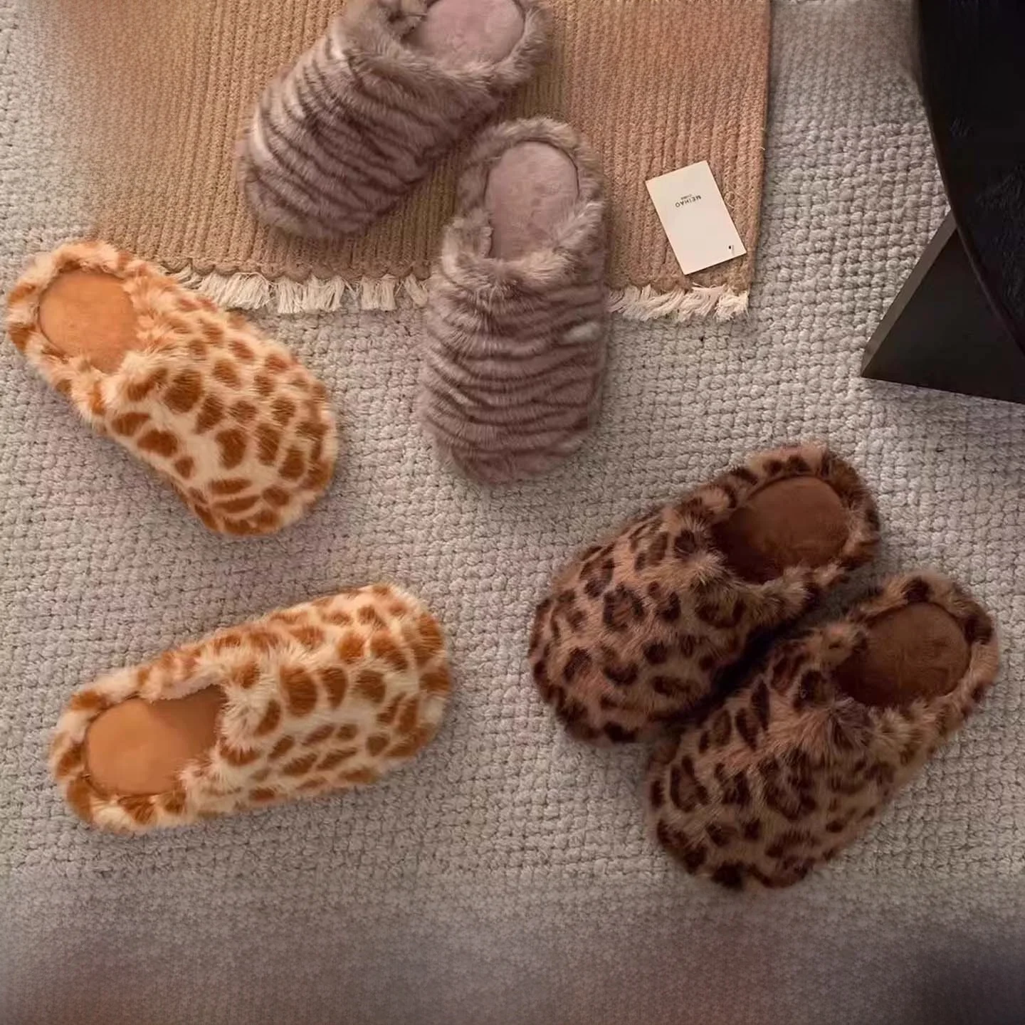 Warmth Animal Patterned Women's Slippers Home Use Furry Slippers Winter Orange Leopard Print Cotton Slippers HARSIDE Brand