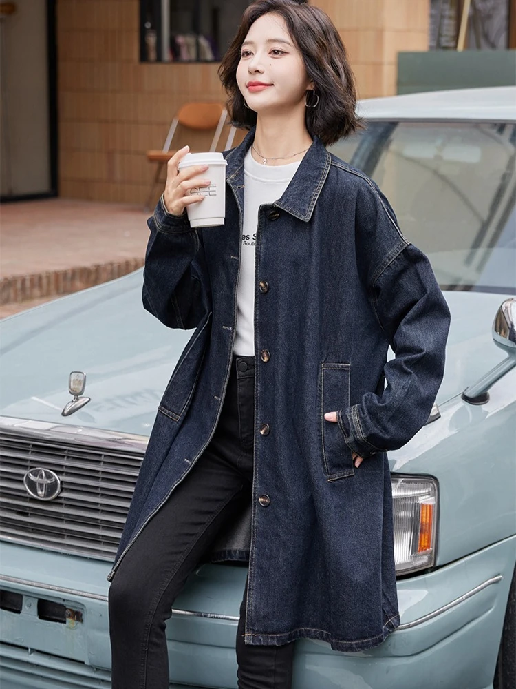 Women's Denim Jacket Loose Korean Style Heavy Duty Embroidery Design Trendy Chic Oversized Casual Streetwear Coat for Outfits