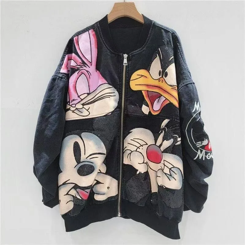 juegos de mesa New Oversized Denim Jacket Women Fall Fashion Retro Cartoon Print Hip Hop Style Casual Trendy Coat electric bike
