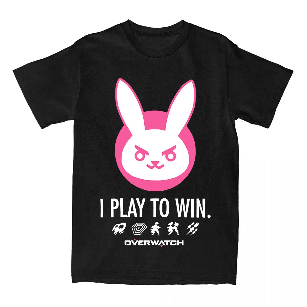 Overwatch 2 D.Va Play To Win Rabbit Tshirts Women Men Clothing Cotton Short Sleeve Loose O-neck T-shirt Graphic Print Tee Female