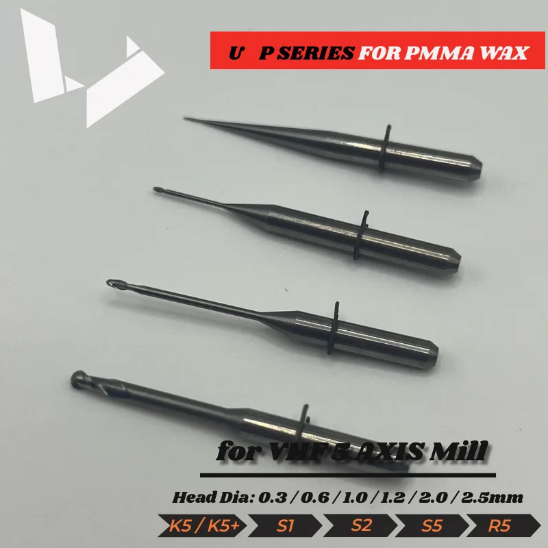 U030-R2-40 P100-R1-40 P200-R1-40 P250-F1-40 Single Tooth Radius Cutter 40mm WAX PMMA Milling Burs VHF Compatible
