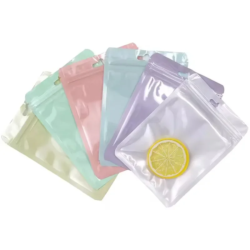 50/100PCS Reusable Plastic Self Sealing Bags Transparent Macaron Color Sealing Bags For DIY Jewelry Retail Wrap Packaging
